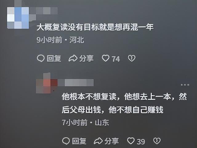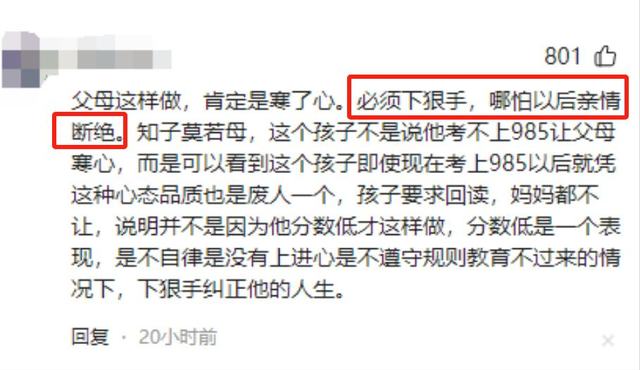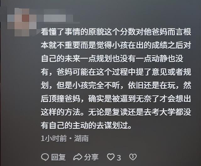 在具有优秀条件的学校中,这样的成绩确实不算高,网友也纷纷表示可以理解他父母的做法了,毕竟在这样的学校,考出倒数的成绩,父母对他有些失望也是正常的。